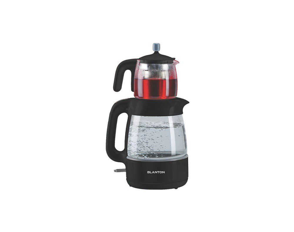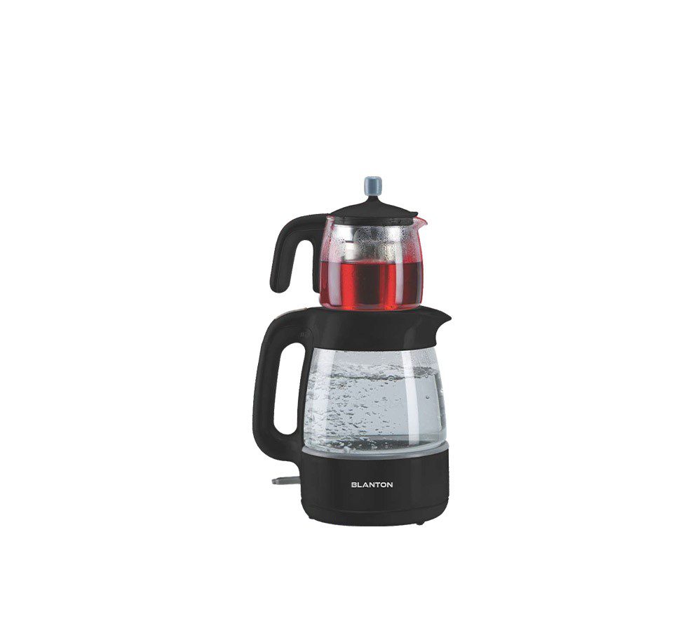 چای ساز روهمی بلانتون مدل TM5001 دارای قوری وکتری مقاوم از جنس شیشه پیرکس و مجهز به المنت استریکس