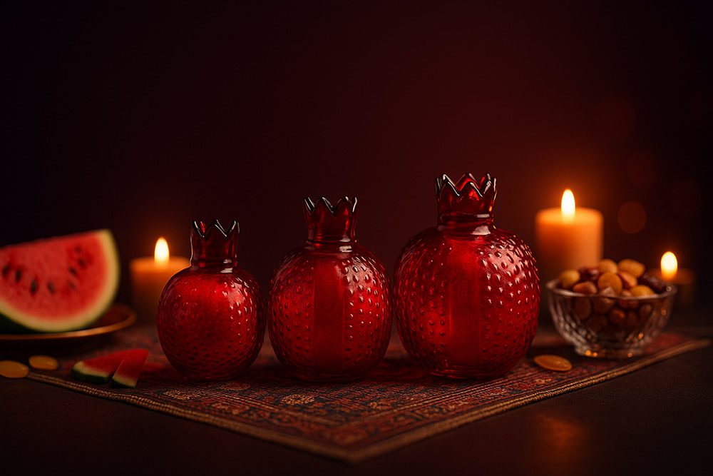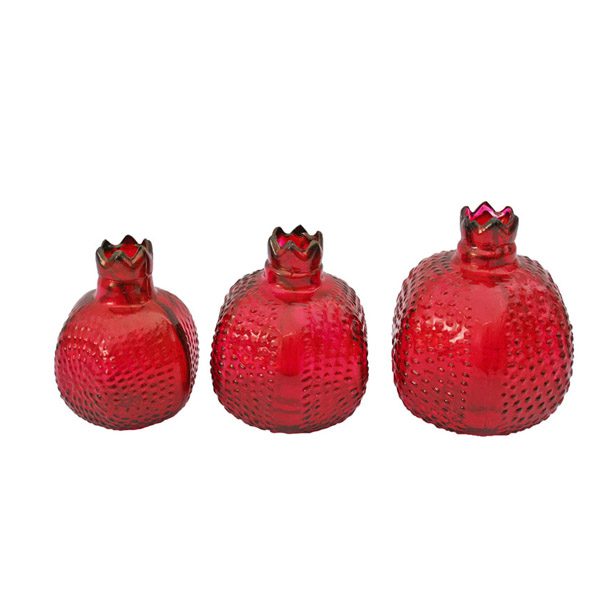 ست تزئینی انار در سه سایز با بدنه بلوری و وزن بسیار سبک یک دکوری زیبا برای فضای پذیرایی و مناسب برای سفره یلدا و هفت سین شما عزیزان است.