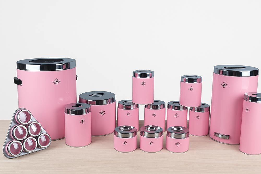 سرویس جهیزیه ۲۱ پارچه دیاکو رنگ صورتی درب کروم