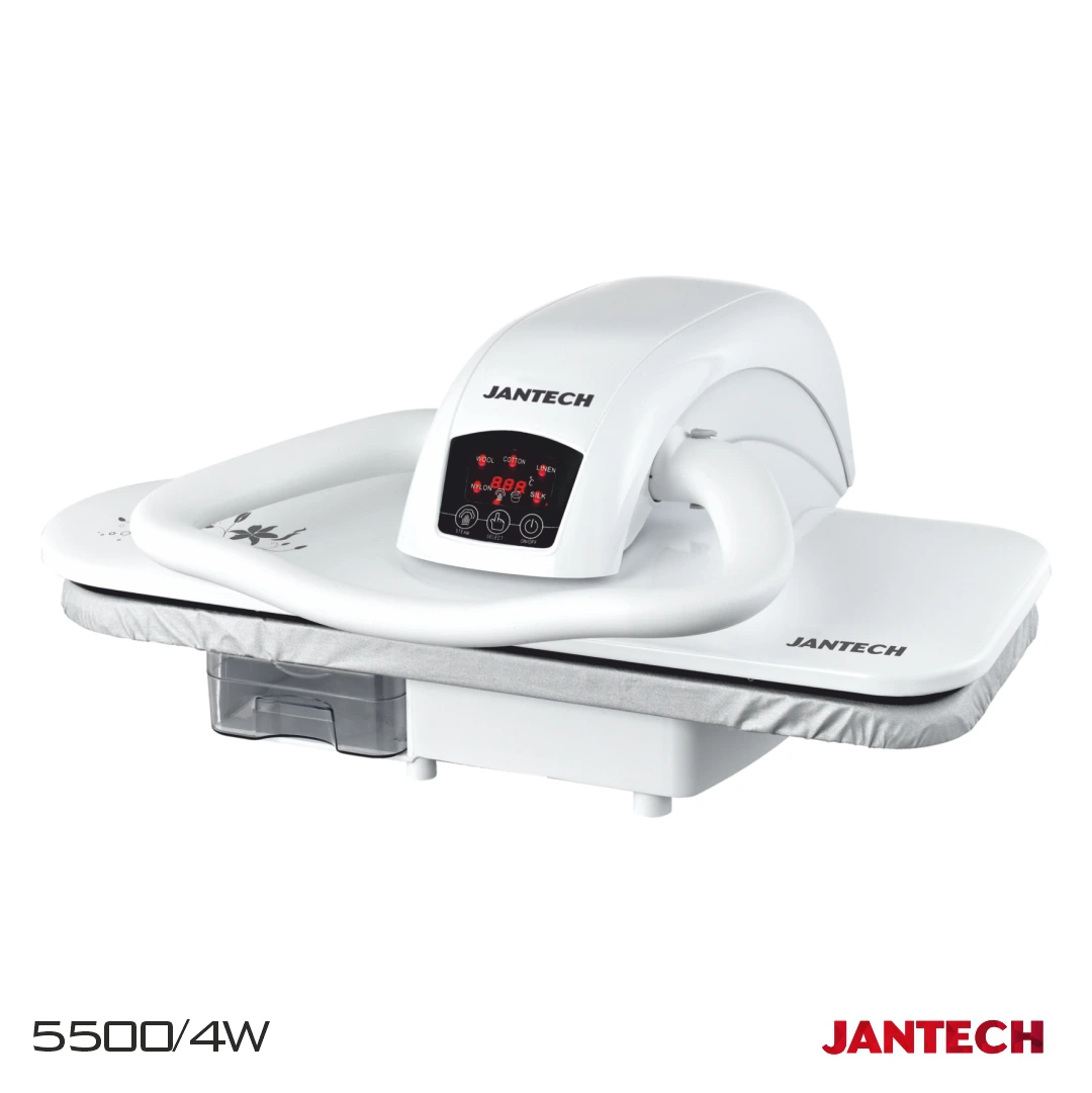 اتو پرس جانتک ۵۵۰۰ به نمایشگر دیجیتال مجهز است تا تنظیمات دستگاه را بهراحتی و با دقت کنترل کنید. وجود فیلتر داخلی و سنسور کنترل مواد معدنی آب (EMC) از تشکیل رسوب جلوگیری کرده و به افزایش عمر مفید دستگاه کمک میکند.