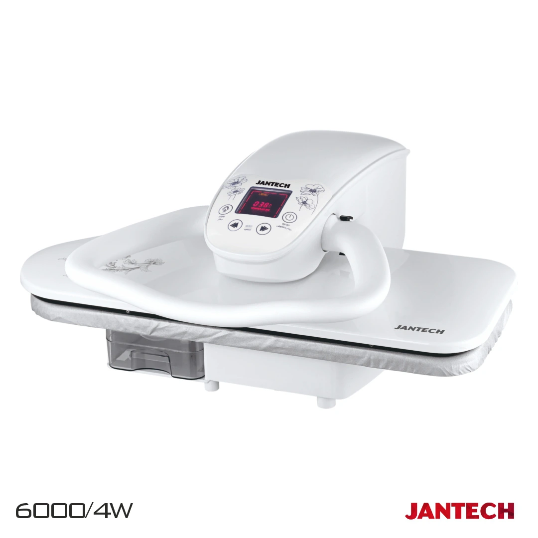 اتو پرس Jantek 6000 با طراحی مدرن و ساختار مهندسیشده، برای کسانی ساخته شده که میخواهند اتوکشی را سریعتر، دقیقتر و حرفهایتر انجام دهند. موتور بخار ۱۶۰۰ وات در کنار خروجی پیوسته ۱۲۰ گرم در دقیقه باعث شده این مدل حتی با سرسختترین چروکها هم بهراحتی مقابله کند. دستگاه تنها ۳ دقیقه پس از روشن شدن برای بخاردهی آماده است و سیستم بخاردهی از بالا اتوکشی را سادهتر و اصولیتر میسازد.