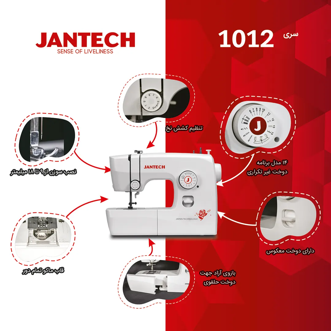 چرخ خیاطی جانتک مدل ۱۰۱۲ یک چرخ خیاطی همه کاره برای دوخت انواع پارچههای نازک تا ضخیم است که با داشتن کاربردهای متنوع میتواند نیازهای خیاطان حرفهای، نیمه حرفهای و مبتدی را برطرف کند. این محصول با گارانتی کاملا معتبر به شما عرضه میشود تا از نظر کیفیت، عملکرد و دوام آن خیالتان آسوده باشد. با وجود مناسب بودن قیمت چرخ خیاطی مدل ۱۰۱۲ جانتک، میتوان آن را به عنوان یک انتخاب عالی برای افرادی که بودجه زیادی جهت خرید چرخ خیاطی ندارند، شناخت.