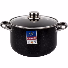 قابلمه دو رو گرانیتی خورشید سایز ۳۴ با درب پیرکس – ترکیب کیفیت و زیبایی در آشپزی