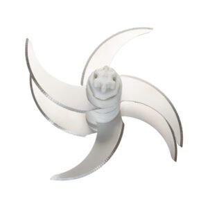 تیغه خردکن این دستگاه شش پره بوده که از کیفیت بسیار بالایی برخوردار است. تیغه از جنس فنر فولاد و استاینلس استیل لیزری با ویژگی های بارز نشکن بودن، ضد زنگ با قابلیت تیزشوندگی مجدد است. پایه تیغه این خردکن کاملا نشکن و ضد هرز شوندگی میباشد.