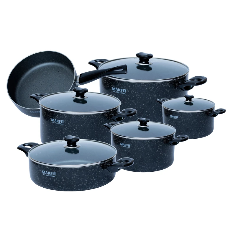 سرویس ۱۱ پارچه بامبو برند ماکفیت شامل قابلمه های ۱۶و۲۰و ۲۴و ۲۸ به همراه درب و تابه ۲۴ تک دسته بدون درب و تابه ۲۸ دو دسته به همراه درب این محصول دارای ۵ لایه پوشش داخلی است. و بدنه بیرون دارای رنگ گرانیتی کوره ای میباشد. این محصول در ۵ مرحله کنترل کیفیت روی آن انجام می گیرد.